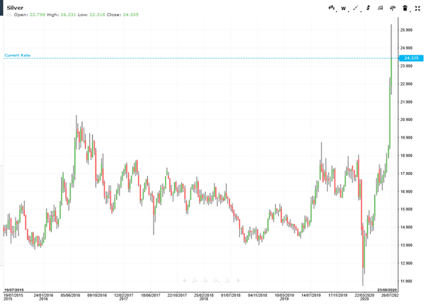 After the quick crash in March, gold price recovered. April, May, June and July - it started climbing and kept edging higher with each passing month. Between March 19th and July 30th, gold price skyrocketed by over 30%. At one point in July, gold futures crossed $2,000 for the first time in history.3 It was supported by several factors. The most prominent one is, of course, the continuing pandemic that remains a major concern in many parts of the world. The possibility of a global second wave also affects traders' risk appetite and market sentiment, adding support to safe haven instruments.4