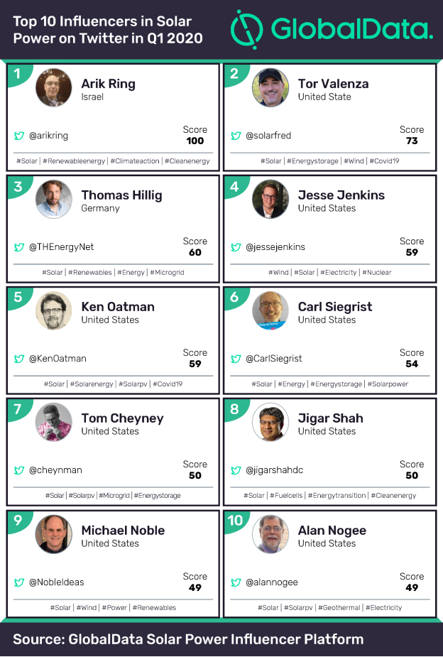GlobalData reveals top 10 solar power influencers on Twitter in Q1 2020