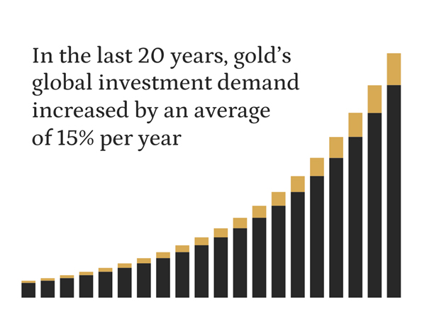 Gold always delivers robust returns, with prices increasing at about 11% a year over the last 50 years, similar to US equities, and much better than US bonds. In the last 20 years, gold has outperformed almost every major asset, with demand rising by 15% a year.