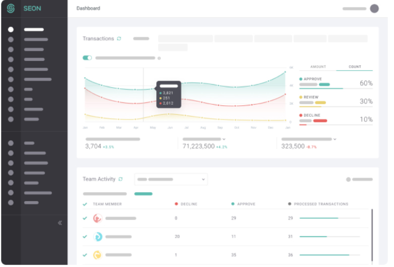 SEON keeps an eye over all of the transactions, and alerts you whenever a colossal transaction occurs. Also, its intelligent mechanism tracks suspicious behavior of your customers, helping you easily track the money launderers.