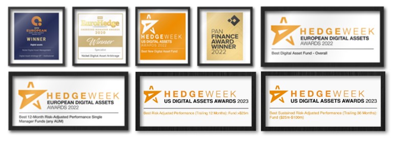 Among others, there are HFM EuroHedge Emerging Manager Awards (2020), HFM Quant Performance Award (2021), Best 12-Month Risk-Adjusted Performance by Hedgeweek Digital Asset Awards (2022), Best Digital Asset Manager Europe 2022 by PAN Finance (2022), and two 2023 Hedgeweek awards for best sustained risk-adjusted returns over 12 and 36 months.